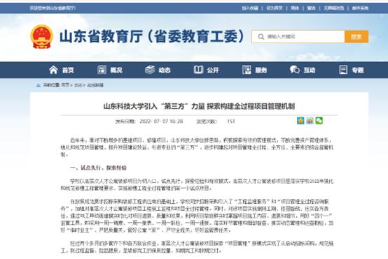 近日,山东省教育厅网站以《taptap点点体育引入“第三方”力量 探索构建全过程项目管理机制》为题,报道了我校构建全过程项目管理机制的做法与成效。