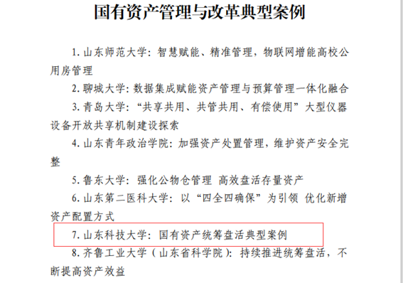 近日,我校撰写的《国有资产统筹盘活典型案例》获得山东省教育厅认可,并在全省教育系统范围内推介学习。