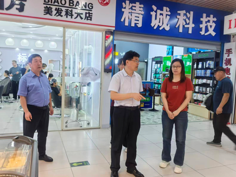 9月30日上午,资产管理处处长苏同营一行深入校园及家属区商业网点,开展商户安全工作大检查行动。